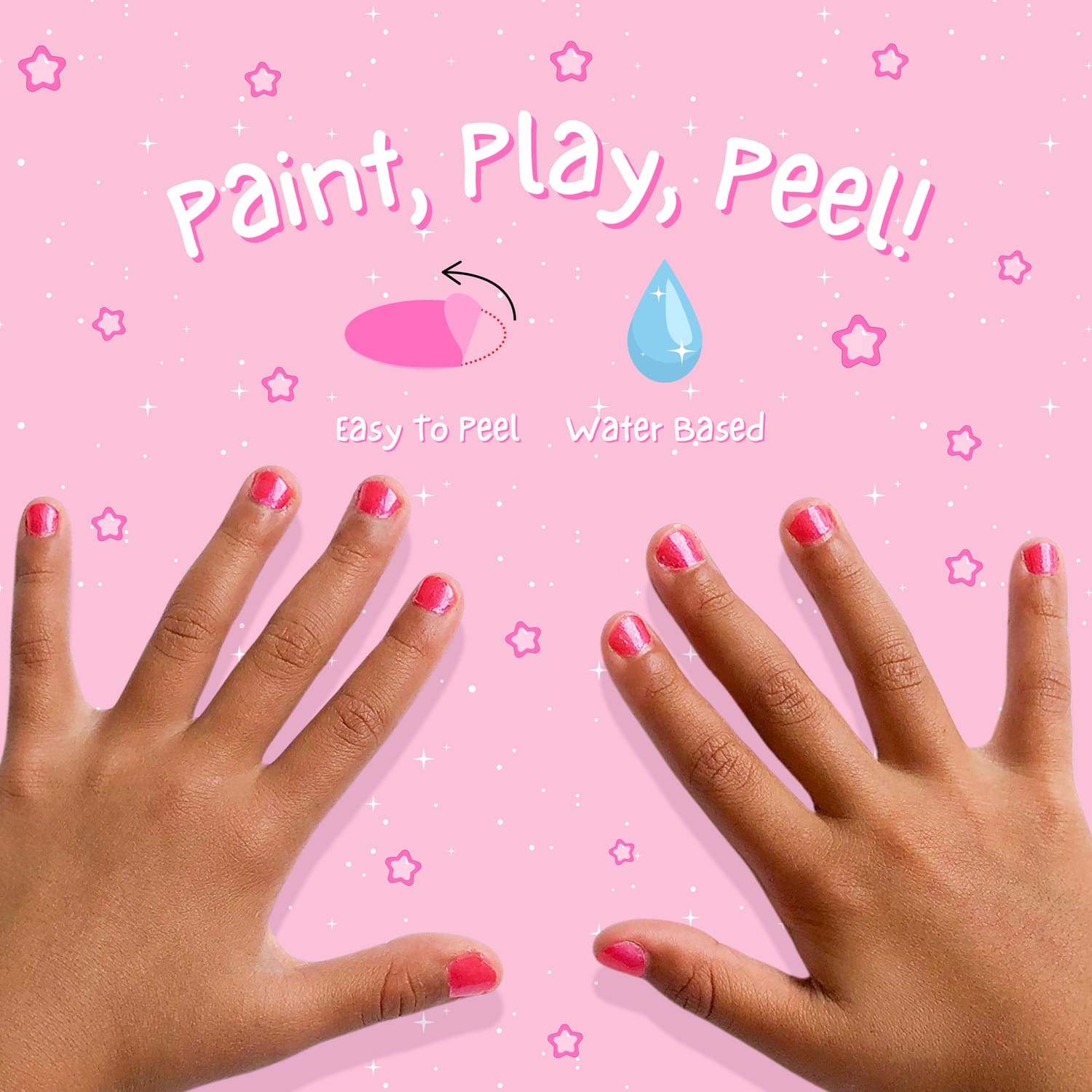 Apply the nail polish to clean the nails and let it dry. When your child is ready for a change, simply peel it of no need for nail polish remover!