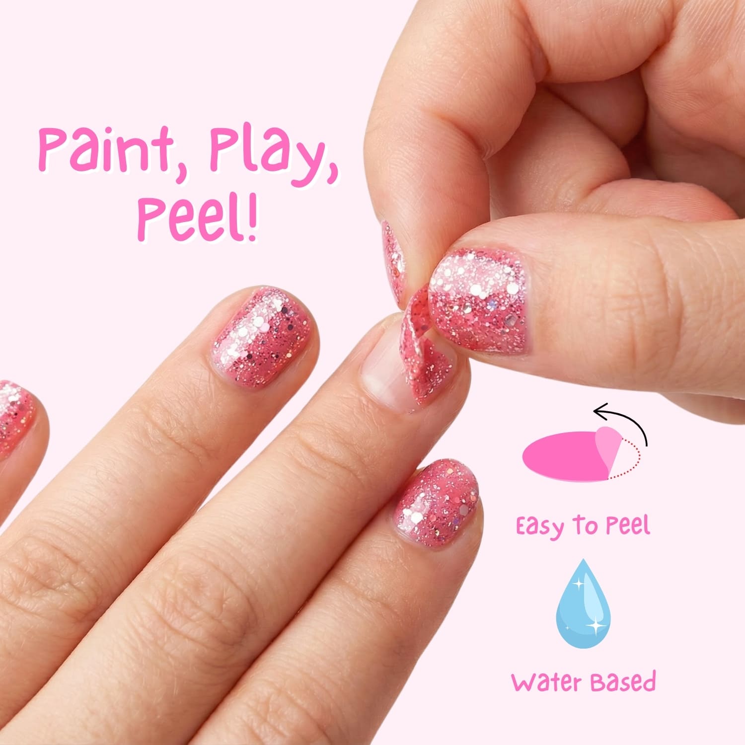 • Water-based formula: Gentle on young nails and skin.