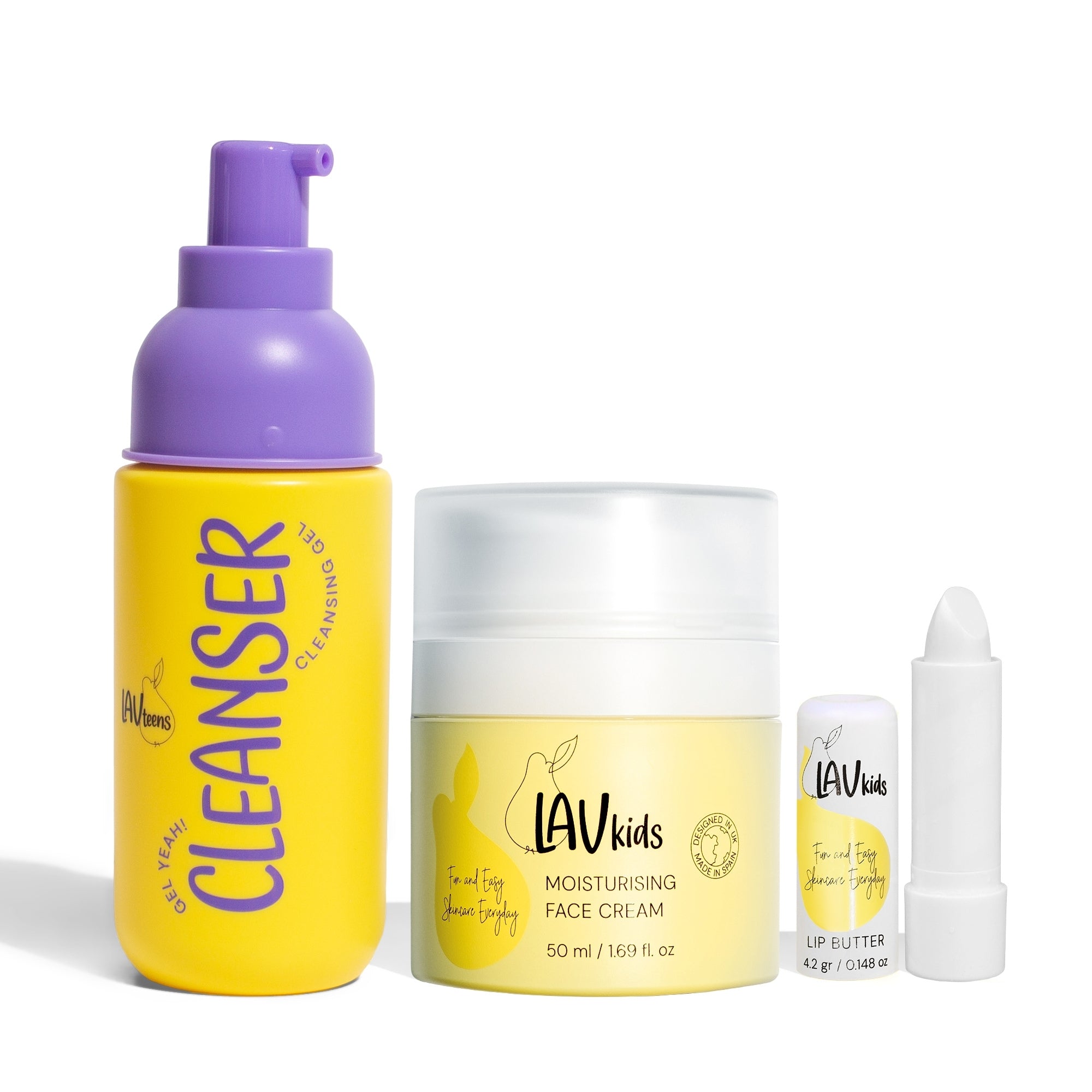 Meet the Teen Face Trio — a simple 3-step routine for fresh, balanced, and hydrated skin. Start with the Teen Cleanser to remove oil and impurities, follow with our award-winning Moisturising Face Cream for lightweight hydration, and finish with nourishing Lip Butter to soften and protect lips.